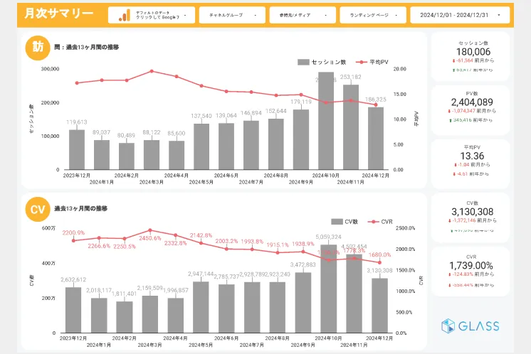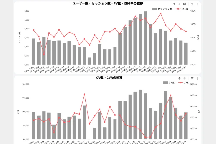 ウェブサイトやECサイトの日々のデータ集計を自動化できる数値管理レポートです。