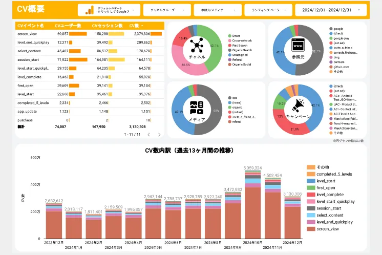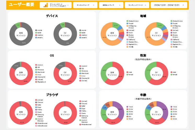 GA4(Google Analytics 4)のデータを様々な角度で可視化できるレポートテンプレートを無料で公開しています。